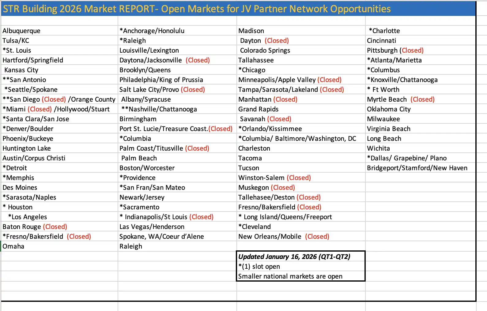 - Quarterly reports: Criteria to invest in STBs and what National Tenants are scaling in 2026-2027, and beyond.